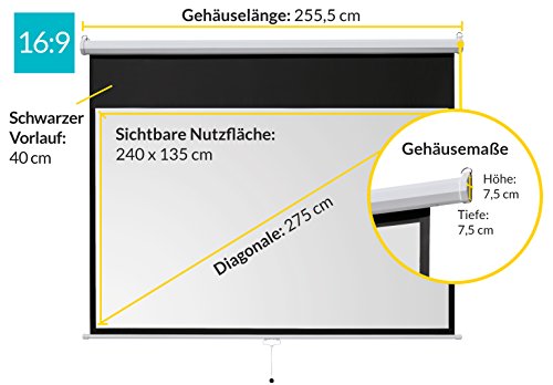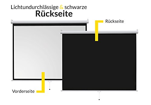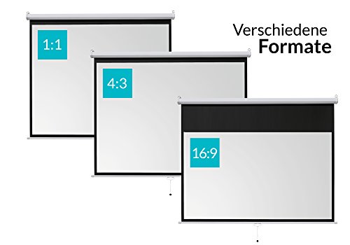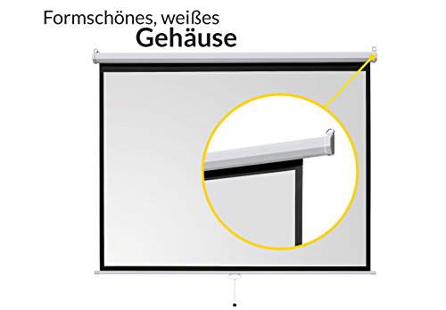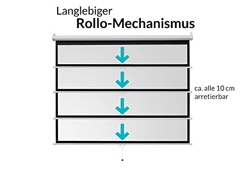 Die Rolloleinwand lässt sich an verschiedenen Stellen arretieren, um sie problemlos auf verschiedene Formate anzupassen. Die Beamerleinwand ist für jedes Projektionssystem gleichermaßen geeignet und reflektiert Ihre Bilder farbgetreu mit natürlicher Brillanz.