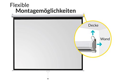 Die Beamer-Leinwand eignet sich zur Wand- und Deckenmontage. Sie ist komplett vormontiert und kann direkt an der Wand oder der Decke installiert und in Betrieb genommen werden.